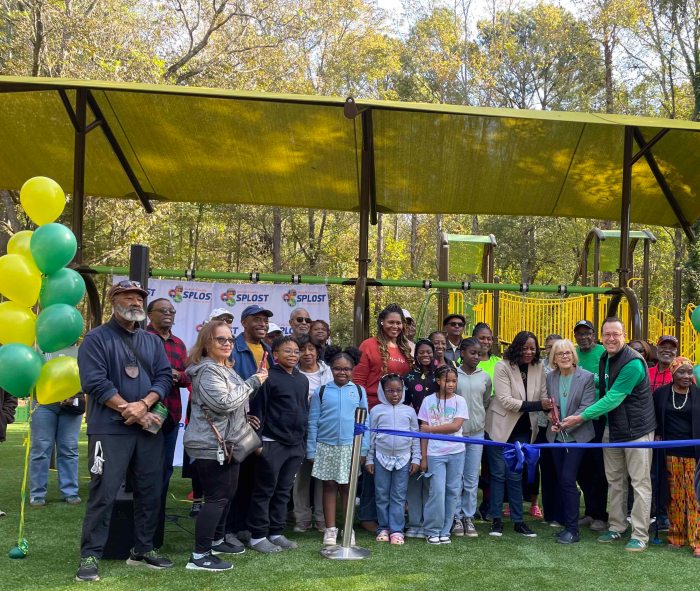 The community came out to thank Park Pride, the Parks Department, and all SPLOST I contributors for the new playground in Biffle Park Oct. 25. District 5 Commissioner Mereda Davis Johnson praised Park Pride for its $50,000 grant and Friends of Biffle Park for their work in securing the grant.