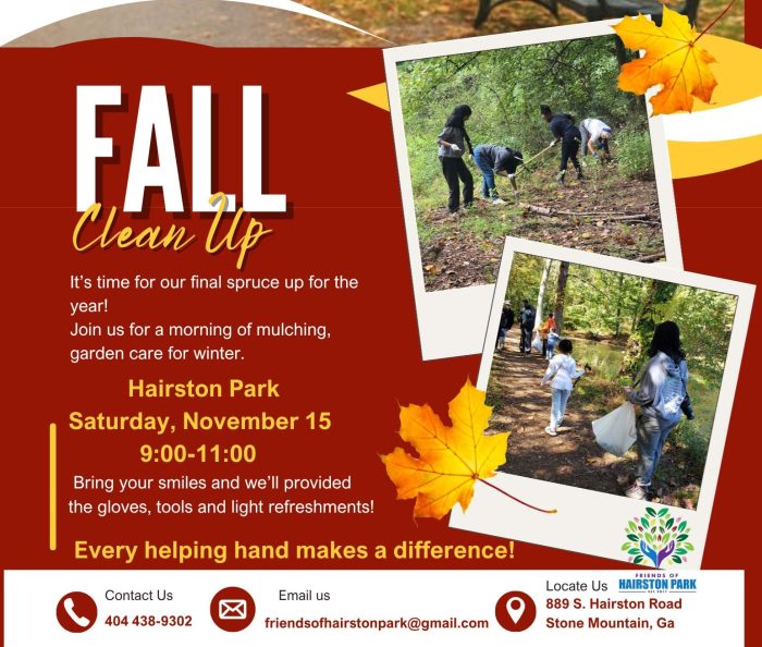 It’s almost time for our annual friends of Hairston Park Fall cleanup, and we would love your helping hands.