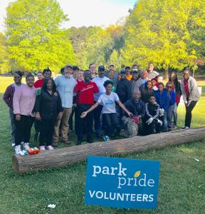 Thanks to John Ahern at Park Pride for guiding us through the project. Many staff and volunteers came from Park Pride, and we appreciate you all. Thanks to Gwendolyn Stegall and the Friends captains: Larry Cole, Jarvis Walker, Jonathan Stegall, and Keith Williams. And thanks to Antioch AME Church, Wells Fargo, Home Depot, and Invesco for sending volunteers.