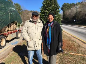 Herbert Love and Gwendolyn Stegall on the cold January planting day.