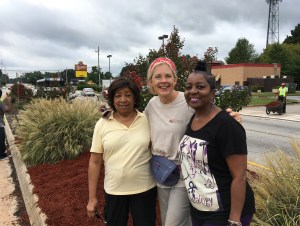 South Hairston median refresh, with volunteers (from left) Lois Dunlap, Jan Costello, and Nadine Rivers-Johnson.